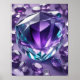 Une grande pierre à gemme aux multiples facettes, avec un dégradé de teintes violettes profondes à turquoises, est entourée de petites pierres à gemmes de couleur similaire sur un arrière - plan mauve doux. Les coupes complexes créent des reflets et des points saillants, ce qui améliore sa brillance.