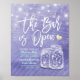 The Bar is Open / Signature Cocktail Drink Menu Wedding Decor Sign Poster Templates - Elegant Lettering Script and Vintage Couple Mason Jars and String Lights on Purple Violet Color Background.