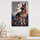 A German Shepherd se dresse fièrement sur un sommet de montagne, avec une citation motivante sur le courage, Courage n'est pas l'absence de peur, mais le triomphe sur elle, montré ci-dessus. La pose confiante des chiens et l'arrière - plan pittoresque évoque un sentiment de force et de détermination.