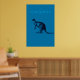 Le Blue Kangaroo Modern Wall Art avec l'image d'un Kangaroo en noir contre un arrière - plan coloré avec le mot "Kangaroo". Très bien dans la décoration moderne des salons.
