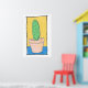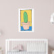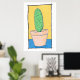 Cette affiche a une composition simple, dessinée à la main à l'aide de stylos et d'aquarelle, d'un seul cactus lobé dans un pot de fleurs. L'arrière - plan est jaune et bleu, le pot est beige rose et le cactus est très vert et épicé, le tout contenu dans une mince bordure noire, avec un entourage blanc. C'est un exemple charmant d'art simple, naïf.