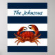 Le crabe rouge au-dessus des bandes bleues nautiques, parfait pour les regards nautiques ou côtiers. Décor mural pour votre maison, bateau ou même un business...customisez en conséquence. Customisez à votre goût.