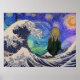Collages uniques de La Grande Vague par Katsushika Hokusai (1760-1849), La Nuit étoilée avec touche de couleur originale par Vincent van Gogh (1853 - 1890), et Le Cri d'Edvard Munch (1863 - 1944).