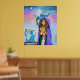 Art d'Imaginaire original de Sandra Gale avec une belle femme tenant l'oeuf d'un dragon alors qu'il commence à éclore. Elle est entourée de ses deux autres dragons matures qui attendent avec impatience l'émergence de l'éclosion. Dessin au crayon couleur original.