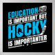 Poster de lancer sur le thème du hockey amusant avec un texte bleu et blanc sur un arrière - plan noir : L'éducation est importante, mais le hockey est important !
