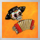 La Journée mexicaine de l'art mort avec un musicien de squelette portant un sombrero et un crâne à sucre se maquillent. Pendant Dia de Los Muertos, la musique est très importante dans les célébrations. Et les squelettes jouent et dansent partout dans le monde ! Après tout, c'est leur nuit !