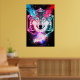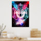 Ce décor à thème est composé d'un loup avec une fumée bleue et rose vibrante qui sort de ses yeux au-dessus d'une planète avec un spectacle de néon géométrique. #wolf #espace #animaux #nature #cool #galactic #néon #fumée #moderne #lune #vivante #tendance #géométrique #étoiles #planète #affiche #espacethemen #mode spatiale