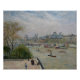 Le Louvre, Printemps. Camille Pissarro. Paysage de la ville de printemps aux couleurs chaudes. Une large rivière traverse la ville. Des bateaux à vapeur naviguent le long de la rivière. Sur la rive opposée, il y a de grands bâtiments. Il y a des nuages dans le ciel. Reproduction d'oeuvres d'art célèbres dans le domaine public.