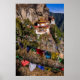 Drapeaux de prière devant le nid du tigre, monastère Taktsang Goempa accroché dans les falaises, Bhoutan | Brenda Tharp / DanitaDelimont.com