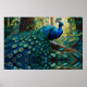 Grand paon bleu dans une forêt de feuilles bleus et verts AI ART CRÉÉ PAR MINX267