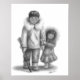 Ce dessin en graphite représente un frère et une soeur inuit plus âgé qui se tient debout avec un frère et une soeur plus jeune et curieux. Une représentation frappante et à l'âge adulte d'un jeune garçon prêt à assumer les responsabilités d'un jeune homme.