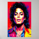 Faites-vous plaisir avec ce portrait pop art de Michael Jackson ! Le King of Pop présente des cheveux bouclés, une veste iconique et un collier brillant dans des tons rouges, jaunes, bleus et violets avec des éclaboussures abstraites pleines d'énergie. Cette illustration illustre son charisme, son talent et sa présence sur scène, parfait pour les fans de pop culture. Ajoutez audace et inspiration à votre décor avec cette pièce unique. Achetez maintenant et célébrez l'héritage de l'innovateur!