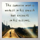 D'autres traductions des mots de Confucius sont : Un bon homme ne donne pas d'ordres, mais conduit par l'exemple. L'homme supérieur agit avant qu'il ne parle, et ensuite il parle selon ses actions. Le grand homme ne se vante pas de lui-même, mais fait ce qu'il doit faire. Confucius (551 av. J.-C. - 479 av. J.-C) était un philosophe social chinois.