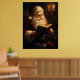 affiche de style vintage du Père Noël lisant un livre à la lueur des bougies