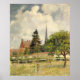 L'Eglise à Eragny. Camille Pissarro. Beau paysage de village. Eglise de village avec flèche. Les arbres poussent à proximité. Au premier plan, il y a un champ. Il y a un gros nuage dans le ciel. Reproduction d'oeuvres d'art célèbres dans le domaine public.