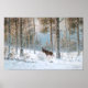 Une charmante affiche de paysage hivernal représentant un wapiti dans la forêt, peinte par le peintre russe Muraviov Vladimir Leodinovich.
