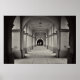 Photographie en noir et blanc des couloirs voûtés du Balboa Park à San Diego, Californie.