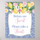 citrons d'aquarelle et aux roses roses roses et pivoines roses contre un arrière - plan de tuiles bleu et blanc cobalt motif pour cet élégant panneau de fête. J'ai mis cela en place pour un Baby shower mais bien sûr tous les champs sont personnalisables à vos besoins. Vous pouvez supprimer ou ajouter des champs de texte en entrant l'outil de conception (cliquez pour customiser plus loin sous les zones de personnalisation du texte).
