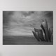 Une image très émouvante du mémorial des débarquements du Jour J en juin 1944 - Les Braves. Cette magnifique sculpture est représentée ici en noir & blanc classique avec les Braves à l'extrême droite de l'image orientée paysage avec le sable, l'océan et le ciel orageux remplissant le cadre autour d'eux