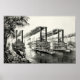 Reproduction du Currier & Ives imprimé "Les champions du Mississippi - Une course pour les Buckhorns", imprimé vers 1866. Scène représentant une course entre trois bateaux du Mississippi.