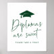 Symbole moderne d'une fête de remise de diplômes avec une illustration d'une casquette verte au sommet avec "Les diplômes sont doux" dans une écriture verte manuscrite. Personnalisez l'affiche de graduation avec votre texte personnalisé (actuellement affiché avec "S'il vous plaît prendre un plaisir"). Le panneau de remise des diplômes est parfait pour l'affichage sur une table avec dessert ou bonbons de remise des diplômes pour vos invités.