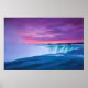 Cette photo présente les chutes du Niagara en bleu et rose vif.