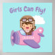 Poster Les filles peuvent voler Aviatrice mignonne Avion
