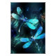 Deux libellules transparentes, lumineuses, turquoise, artistiquement dessinées sur l'arrière - plan de nuit avec des algues luminescentes et des lucioles. libellule éclatante.