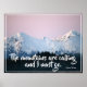 Cette affiche présente une photographie d'une chaîne de montagnes de l'Alaska enneigée au crépuscule avec un ciel rose magnifique. La citation de John Muir, "les montagnes appellent et je dois y aller."