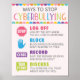 Comment arrêter la cyberintimidation pour la campagne anti-intimidation à l'école. Affiche anti-intimidation à utiliser dans les salles de classe, ou le bureau d'un conseiller scolaire, d'un thérapeute pour enfants, d'un psychologue scolaire, d'un travailleur social et d'un psychologue pour enfants.