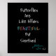 Une brève citation décrivant la corrélation entre un papillon et une rencontre romantique ! Sur un arrière - plan noir avec le texte blanc dit "Les papillons sont comme des affaires belles mais courtes vécues" Le mot beau est en polices colorées. Copyright protégé.