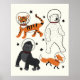 L'espace est assez sauvage, surtout lorsqu'il est rempli d'animaux sauvages qui jouent à l'astronaute. Illustration d'un tigre, d'un renard, d'un gorille et d'un ours polaire portant des casques d'espace de style rétro avec des graphismes en étoile noire posés contre un arrière - plan couleur crème ou ivoire.