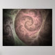 Cette abstraite fractale de flamme en spirale présente un motif complexe de rose, crème et vert muet dans un design presque organique.
