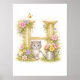 Poster Letter H Gold Spring Nature Monogram Kitten Kids
