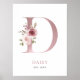 Poster Lettre D Monogramme Rose d'aquarelle Florals Nurse