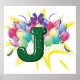 Poster Lettre J Monogramme de Célébration avec Ballons