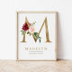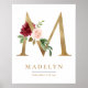 Poster Lettre M Monogramme Nom Marsala Floral Nursery