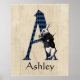 Le design fantastique pour les amoureux de tous âges d'Alice au pays des merveilles comprend la lettre majuscule / initiale A avec remplissage en arlequins noir et bleu et l'illustration originale en lapin blanc qui a été teinte, sur un arrière - plan de panneau de bois faux. Personnaliser avec le nom ou un autre message