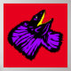 Mon illustration graphique d'un lézard à collerette en violet néon et noir sur fond rouge néon. Le fond peut être changé en la couleur de votre choix.