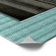 Voici une photo de la Statue de la Liberté, avec un ciel bleu derrière elle, et une bordure verte texturée qui correspond à la couleur de sa peau de cuivre.