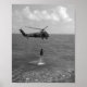 Cette photo représente la récupération de la capsule Freedom 7 (MR-3) par un hélicoptère de la marine américaine. La mission MR-3 a réussi à placer le premier astronaute américain, Alan Shepard, dans l'espace pendant 15-1/2 minutes et est retourné sur Terre en toute sécurité le 5 mai 1961. Mercury Redstone 3 (MR-3, également désigné Freedom 7) a été le premier vol d'une fusée américaine avec un humain à bord (Alan B. Shepard, Jr.), survenant vingt-trois jours après le vol orbital de Vostok 1 par Yuri Gagarin. Les objectifs de MR-3 étaient les suivants : (1) familiariser l'homme avec une expérience de vol spatial brève mais complète, y compris le décollage, le vol propulsé, le vol sans poids (environ 5 minutes), la réadmission et les phases d'atterrissage du vol; (2) évaluer la capacité de l'homme à fonctionner comme unité fonctionnelle pendant le vol spatial en démontrant le contrôle manuel de l'assiette de l'engin spatial avant, pendant et après le feu rétroactif et par l'utilisation de la communication vocale; (3)) étudier les réactions physiologiques de l'homme pendant le vol spatial; et (4) récupérer l'astronaute et l'engin spatial.