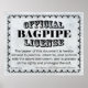 Licence Bagpipe Officielle. Il y a de nombreuses activités impliquant divers équipements, comme l'utilisation d'une automobile, d'un avion, etc., qui nécessitent une formation spécialisée et des licences. Faire de la musique est quelque chose qui nécessite généralement une formation : leçons, pratique et répétitions. Ne devrait-on pas exiger des futurs musiciens qu'ils reçoivent une licence pour exploiter l'équipement, c'est-à-dire leur instrument de musique?