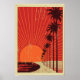 vintage+carte postale californie palmiers+arbres coucher de soleil plage tropicale océan