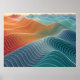 Un rendu 3D vibrant et fascinant de collines ou de vagues roulantes, créé avec des lignes fluides et topographiques. La scène est baignée d'une lumière chaude et éthérée, et les lignes se transforment en douceur à travers un spectre de couleurs, du bleu cool et des teals. Ce paysage abstrait évoque un sens du mouvement fluide et de l'énergie dynamique.