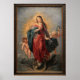 Le tableau représente la Vierge Marie élevée au-dessus d'un globe, debout sur une lune de croissant, symbolisant sa pureté et son statut divin. Sous ses pieds, une sphère sombre contient un serpent, représentant le mal et le péché originel, qu'elle écrase triomphalement. Le regard serein et les robes qui coulent de Marie - rouge symbolisant l’amour et le sacrifice, et un manteau bleu représentant la pureté - soulignent sa grâce spirituelle. Deux chérubins l'accompagnent : l'un regarde vers le haut, soulignant son importance céleste, et l'autre tenant une couronne de laurier, symbole de victoire et de vie éternelle. La composition est composée de nuages tourbillonnants dynamiques et de lumière éclatante, créant un sens du mouvement et une présence divine typique du style baroque de Rubens.