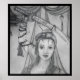 Ce dessin en graphite de Sandra Gale montre un beau guerrier asiatique avec une épée Katana. Les symboles kanji le long de la lame symbolisent la force, le courage et l'honneur.