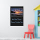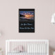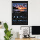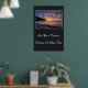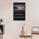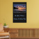 Affiche illustrée avec une photo d'un beau coucher de soleil sur la plage. L'arrière - plan de l'affiche est une couleur de charbon de bois. Customisez cet objet ou achetez tel quel. Image stock