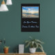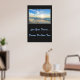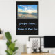 Affiche illustrée avec une photo d'un beau coucher de soleil sur la plage. L'arrière - plan de l'affiche est une couleur de charbon de bois. Customisez cet objet ou achetez tel quel. Image stock