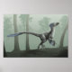 Une Deinonychus argentée s'agite lentement à travers un bois brumeux, parfumant l'air.