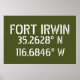 Coordonnées de la carte de latitude et longitude pour Fort Irwin - situé dans le désert près de Barstow, en Californie police blanche de style sercil sur l'arrière - plan vert de l'armée.